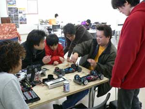ピットで待機中の選手のみなさん。セッティング談義ですか?